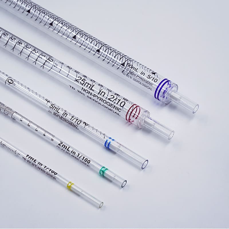 Serological pipettes deliver measured volumes of liquids with high accuracy, essential for cell culture, fluid transfer, and reagent preparation. Available in glass or disposable plastic, these pipettes come in various lengths and volume ranges. Their design includes clear graduation marks and flared ends for attachment to pipette controllers. These tools enhance precision and reproducibility in routine and research laboratory work.